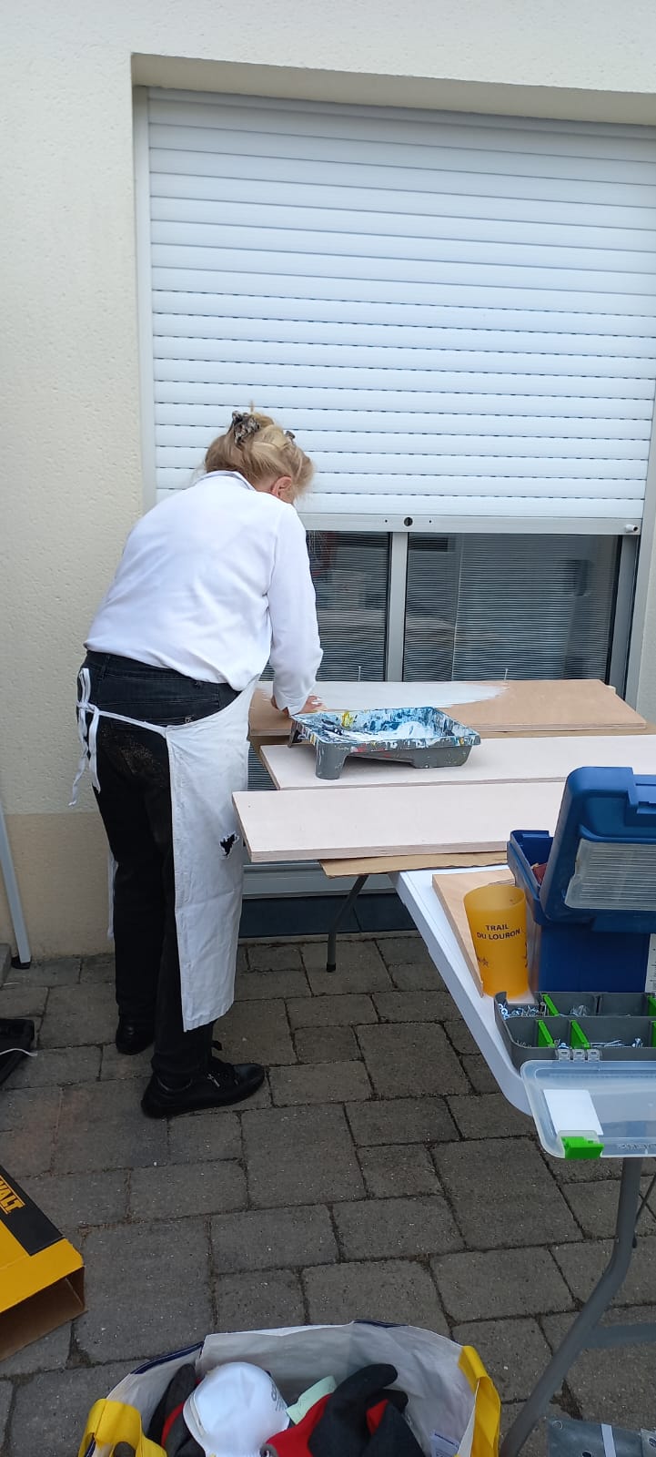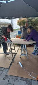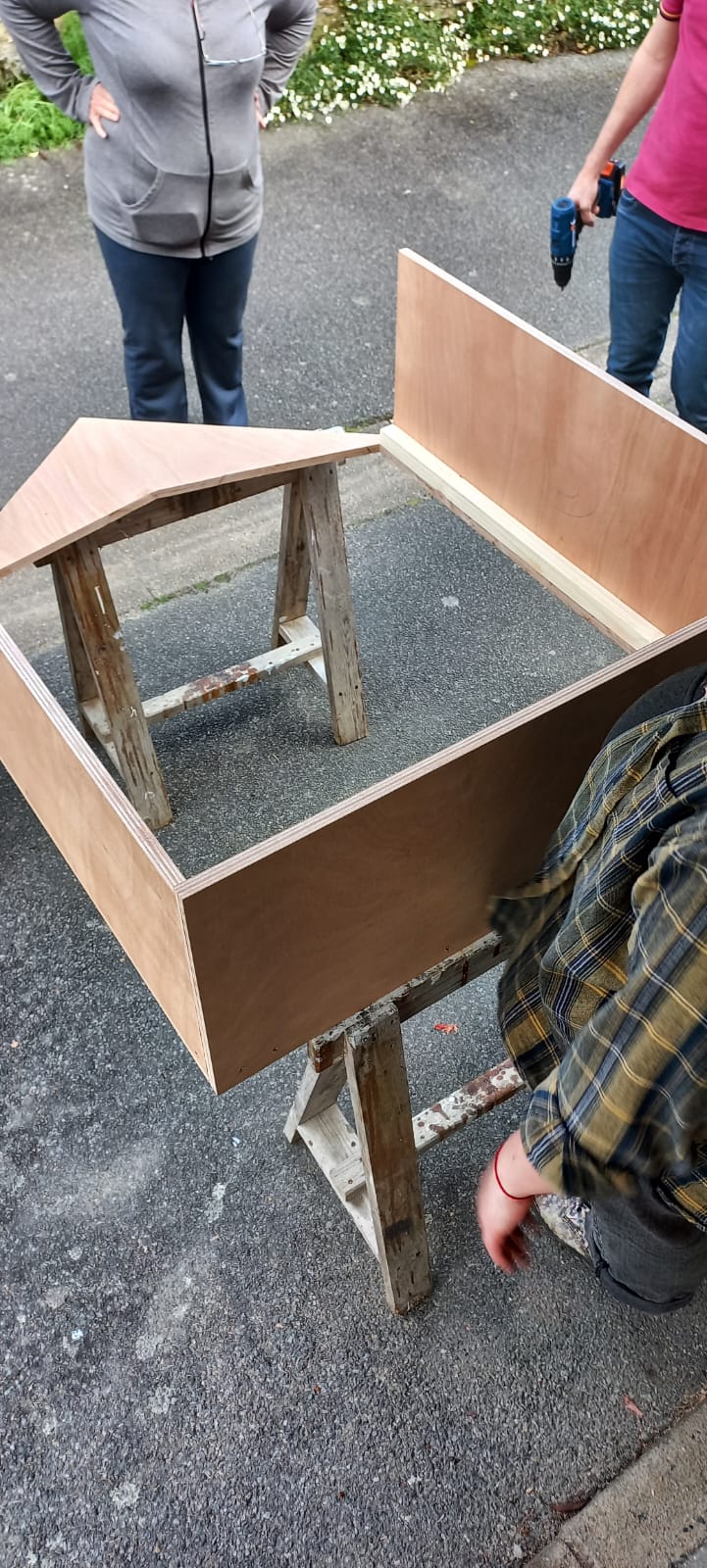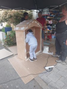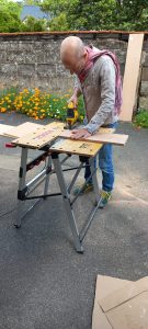 Samedi 24 mai, l’équipe bricolage s’est retrouvée pour poursuivre la construction de la boîte à livres du quartier.